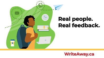 Finish the semester strong! Submit your draft writing to WriteAway and get free, fast, and friendly feedback from qualified tutors within 48 hours (response times may be longer at peak times). Go to: writeaway.ca