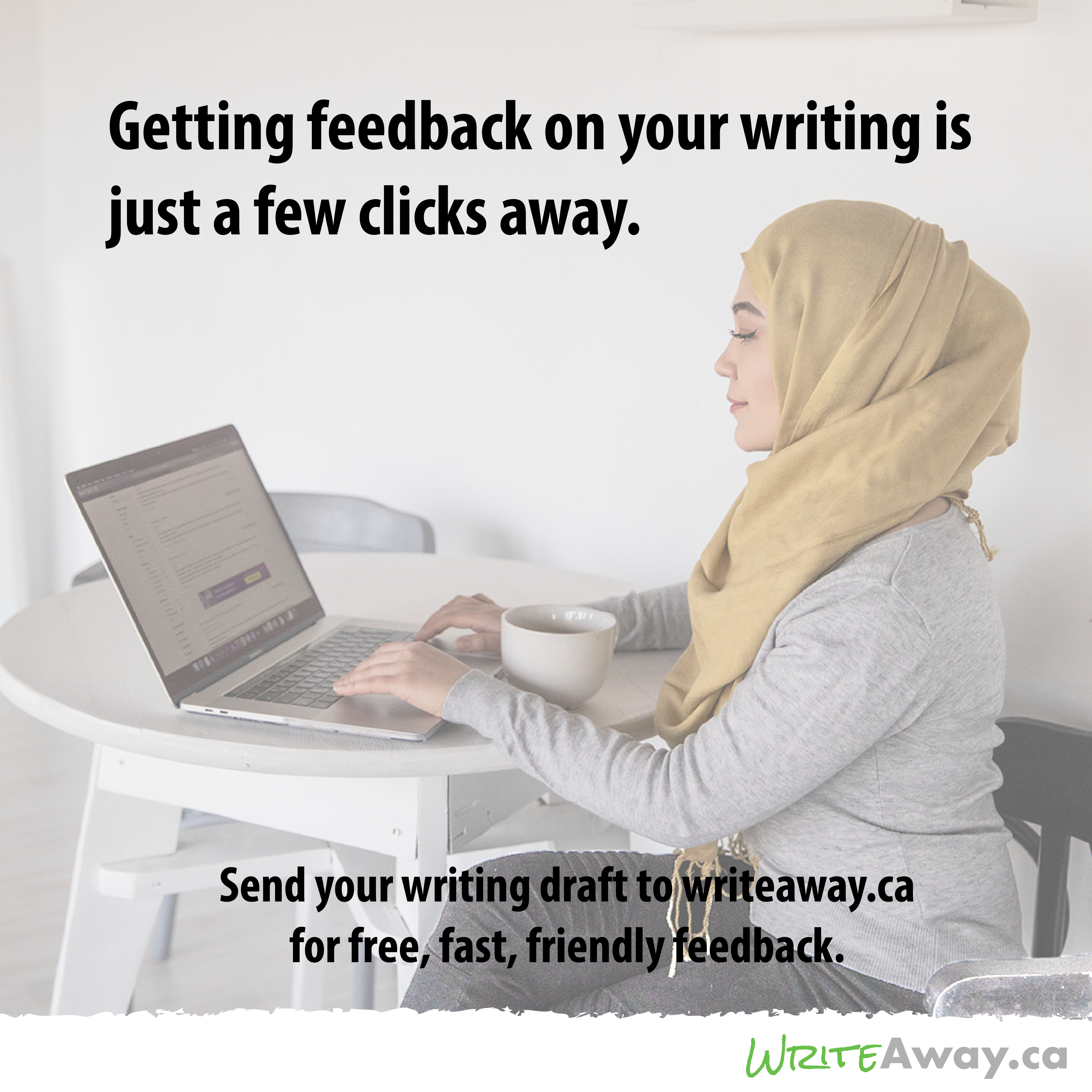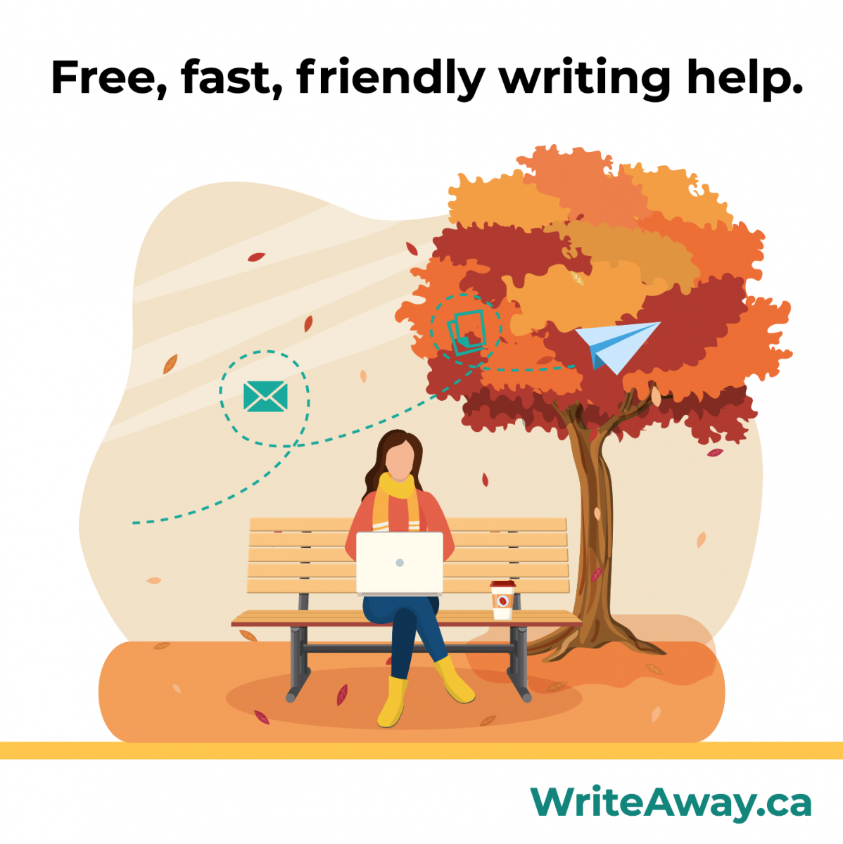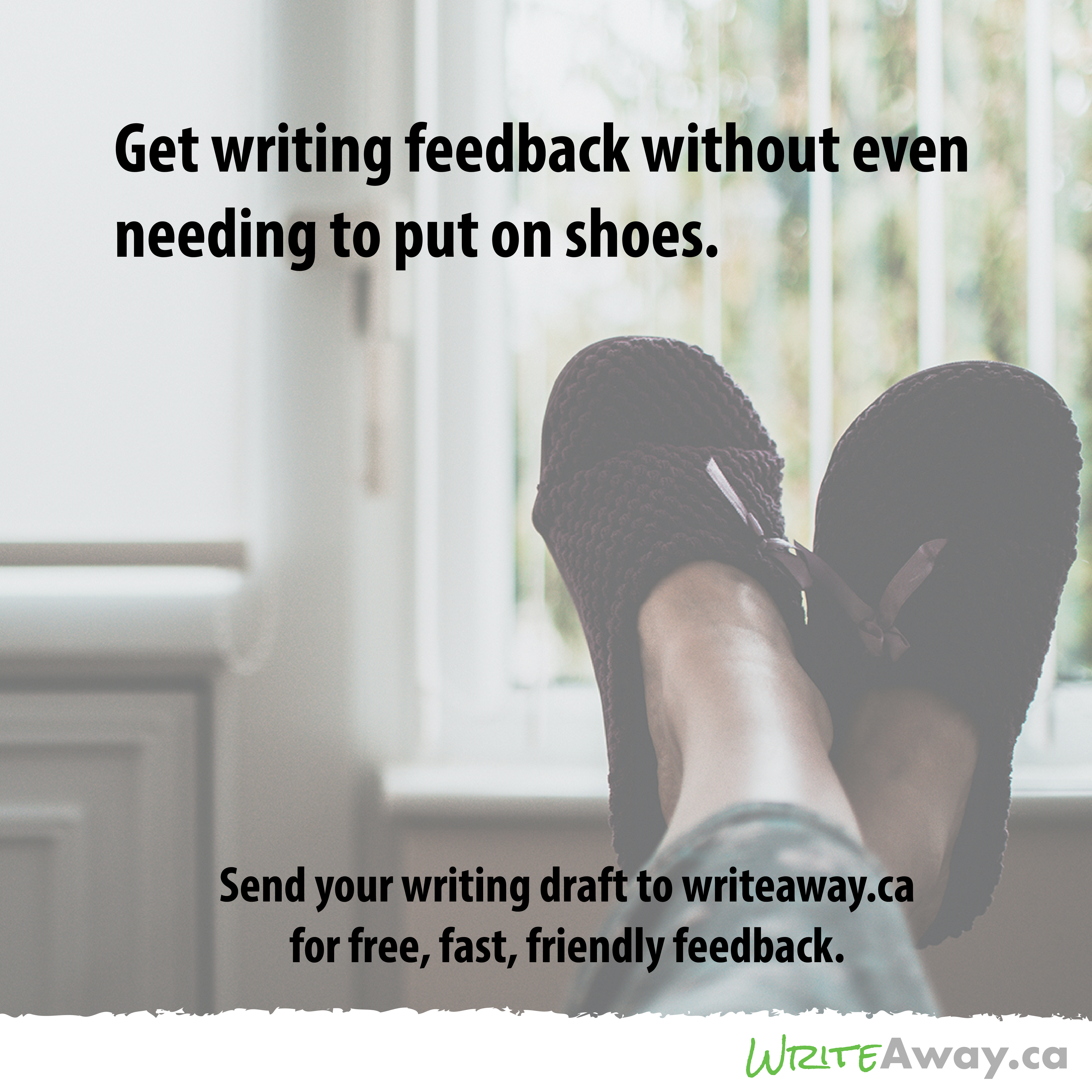 Get free, fast, friendly feedback on your writing from the comfort of your home. Submit a draft paper to WriteAway and get useful feedback by email. You can even re-submit up to three times! Try it today: https://writeaway.ca/connect