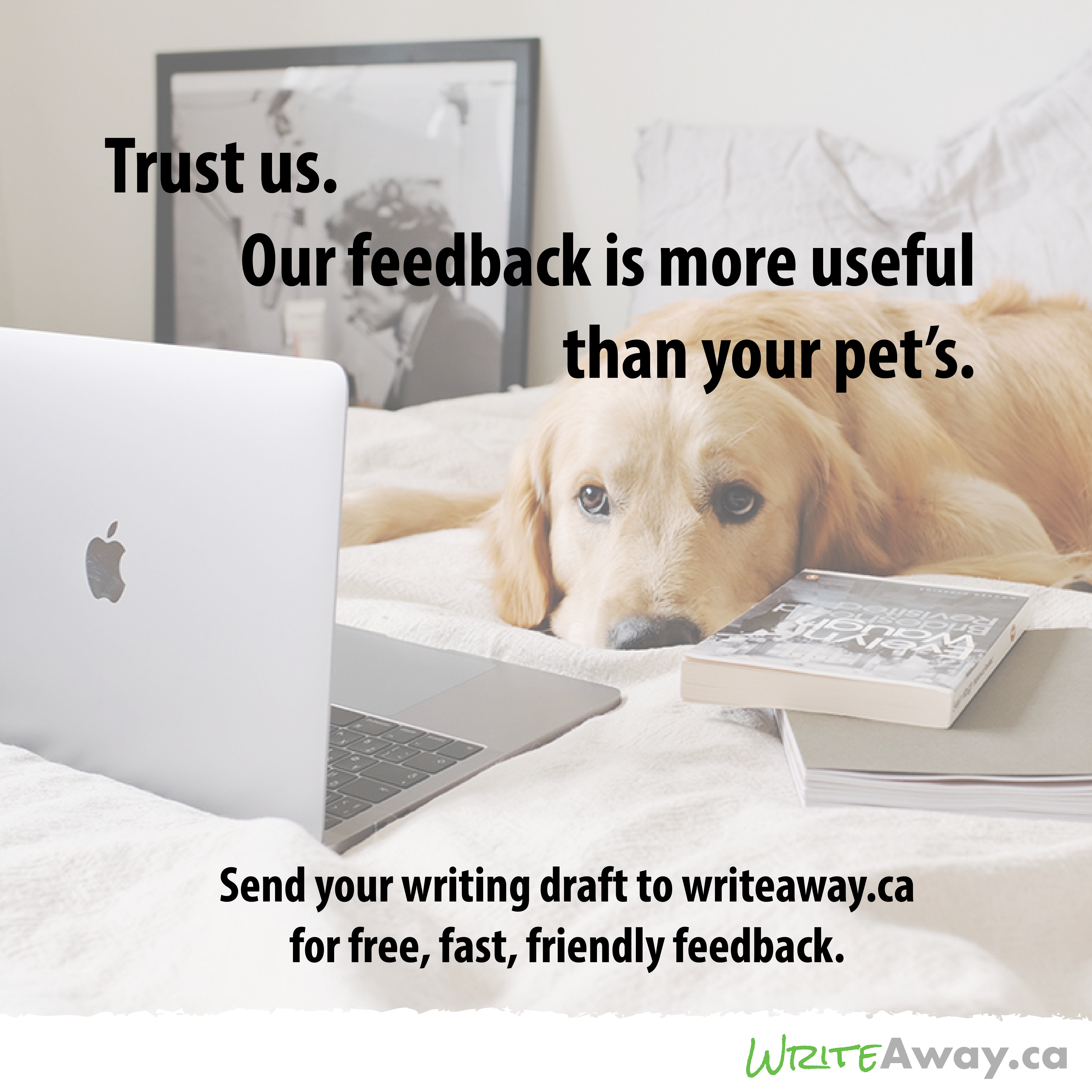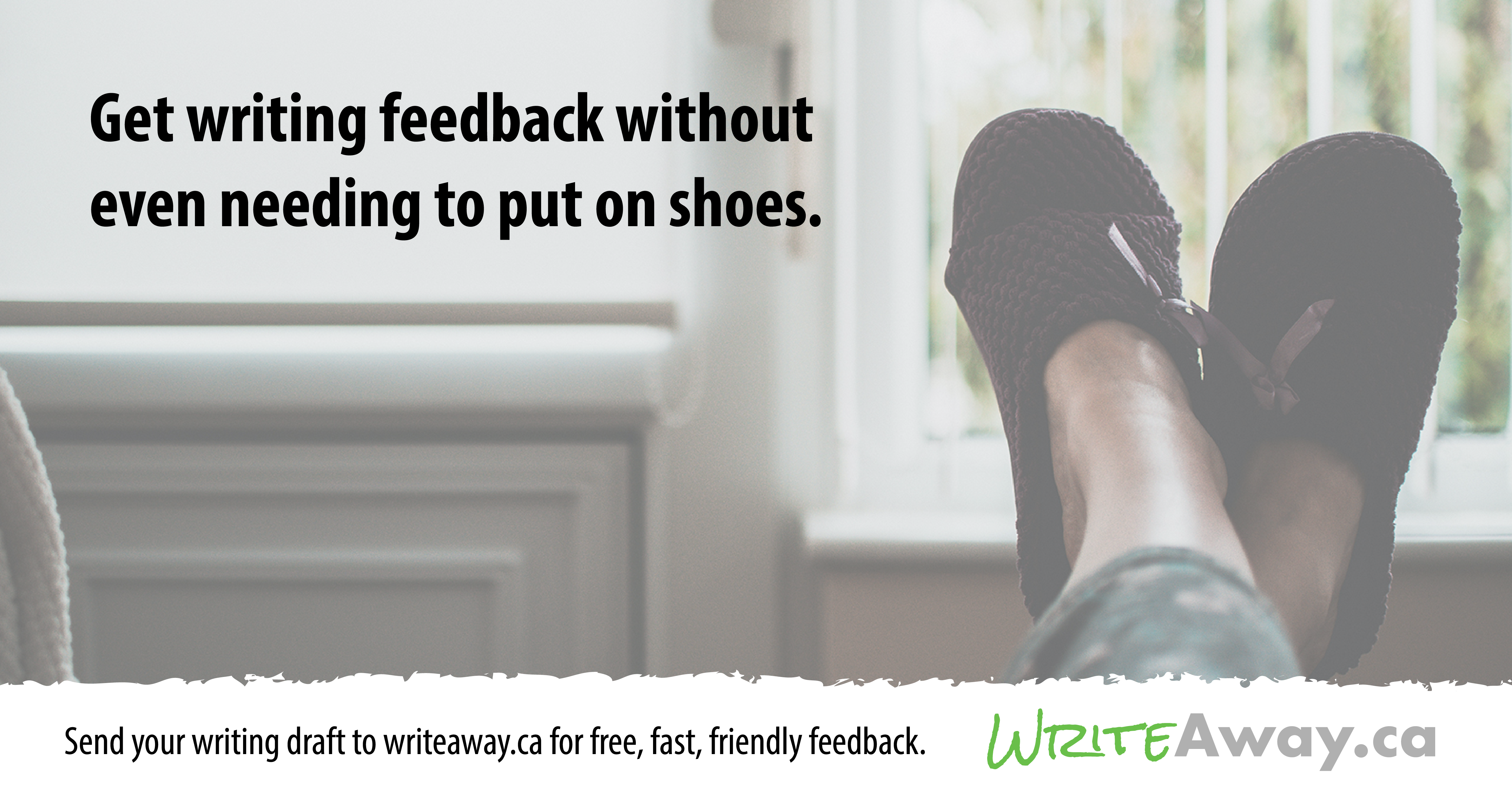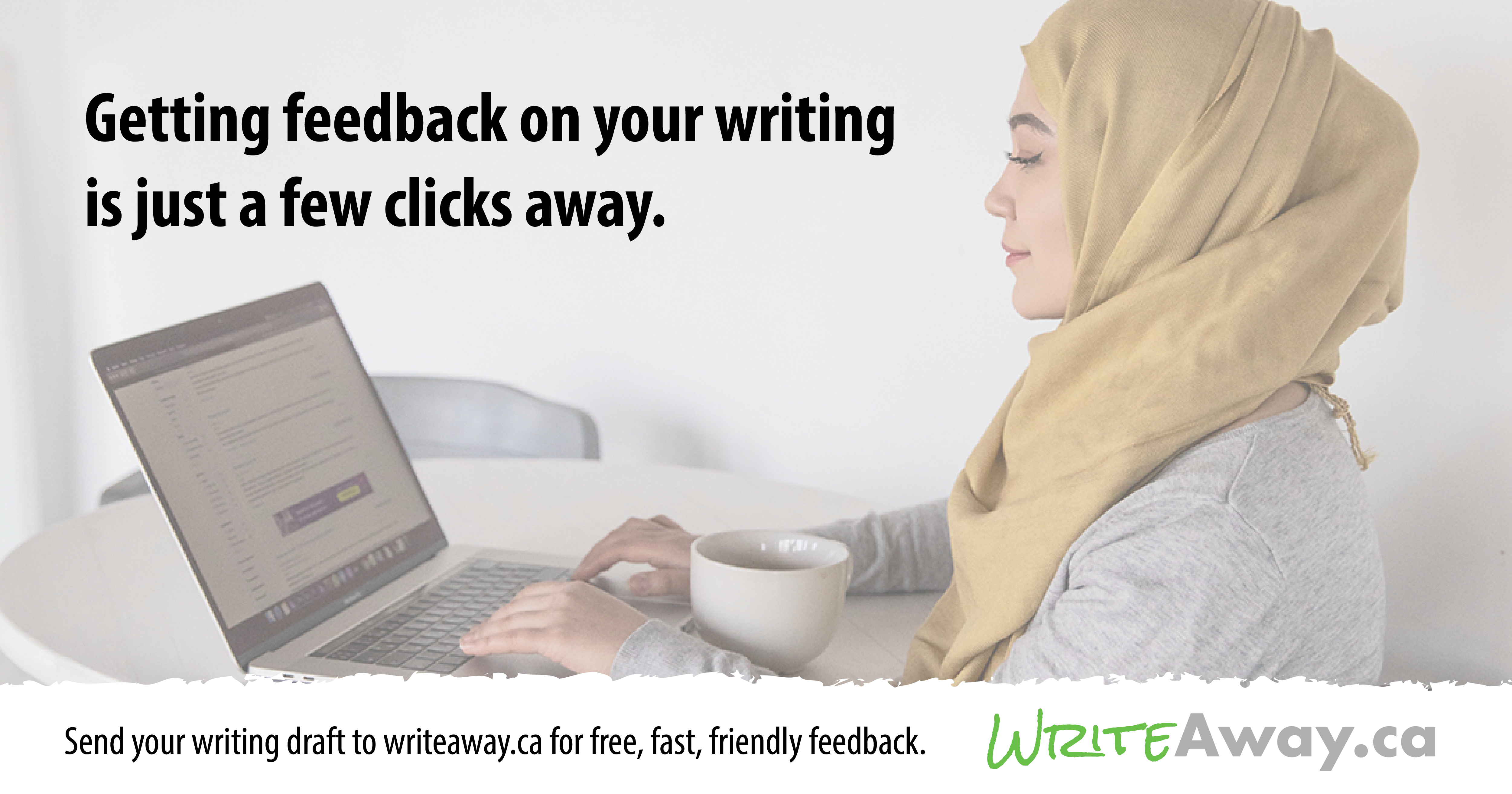 Get free, fast, friendly feedback on your writing from the comfort of your home. Submit a draft paper to WriteAway and get useful feedback by email. You can even re-submit up to three times! Try it today: https://writeaway.ca/connect