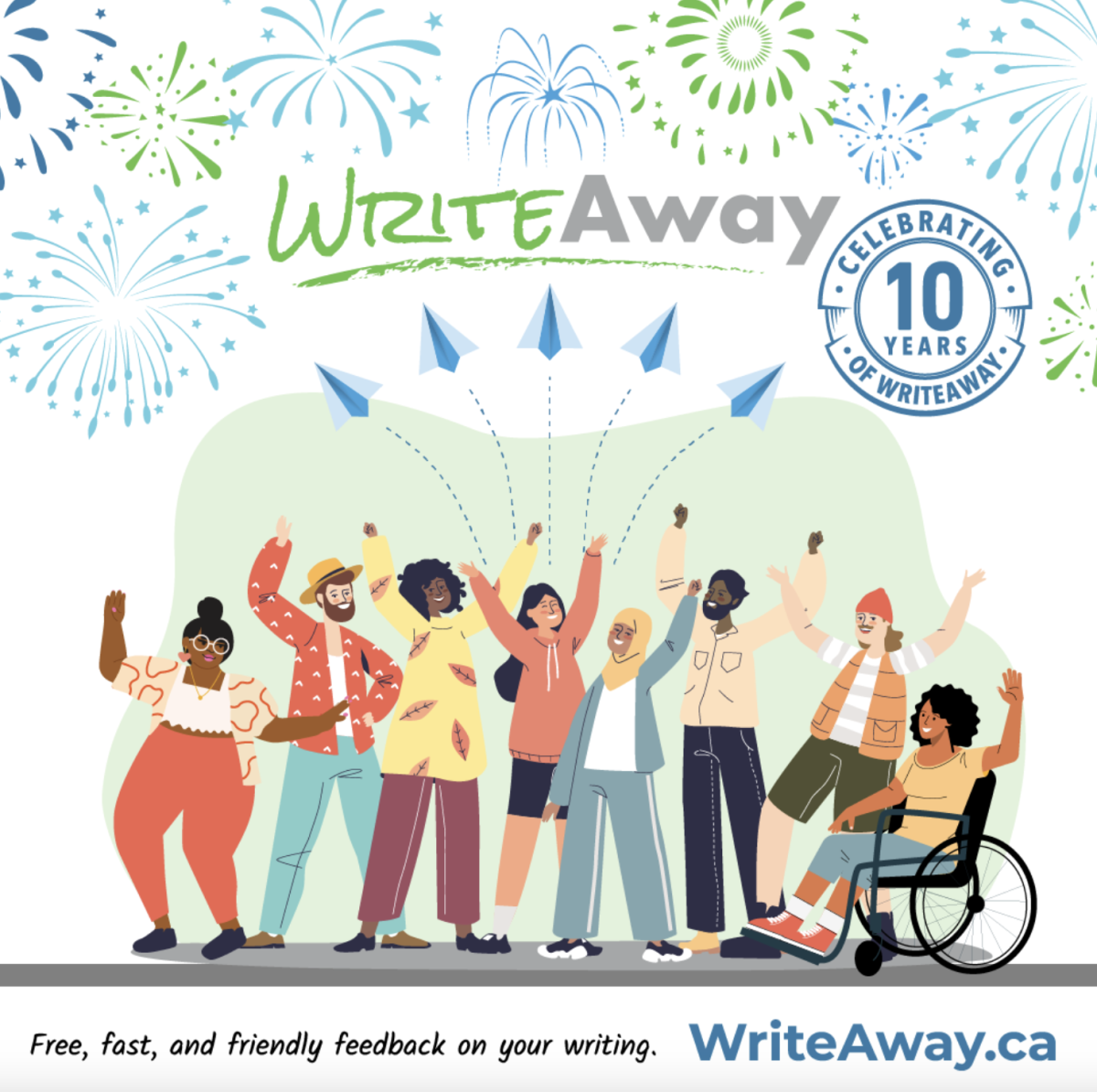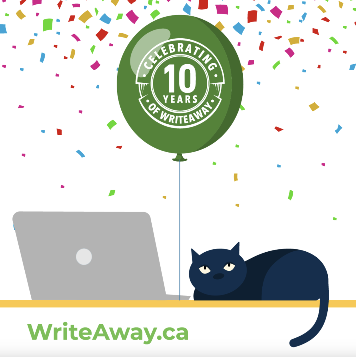 Celebration Time! WriteAway turns 10 this year! A decade of helping academic writers thrive. Here's to many more years of supporting students with free, fast, friendly feedback! #WriteAway #WriteAwayTurns10. Try it out: writeaway.ca