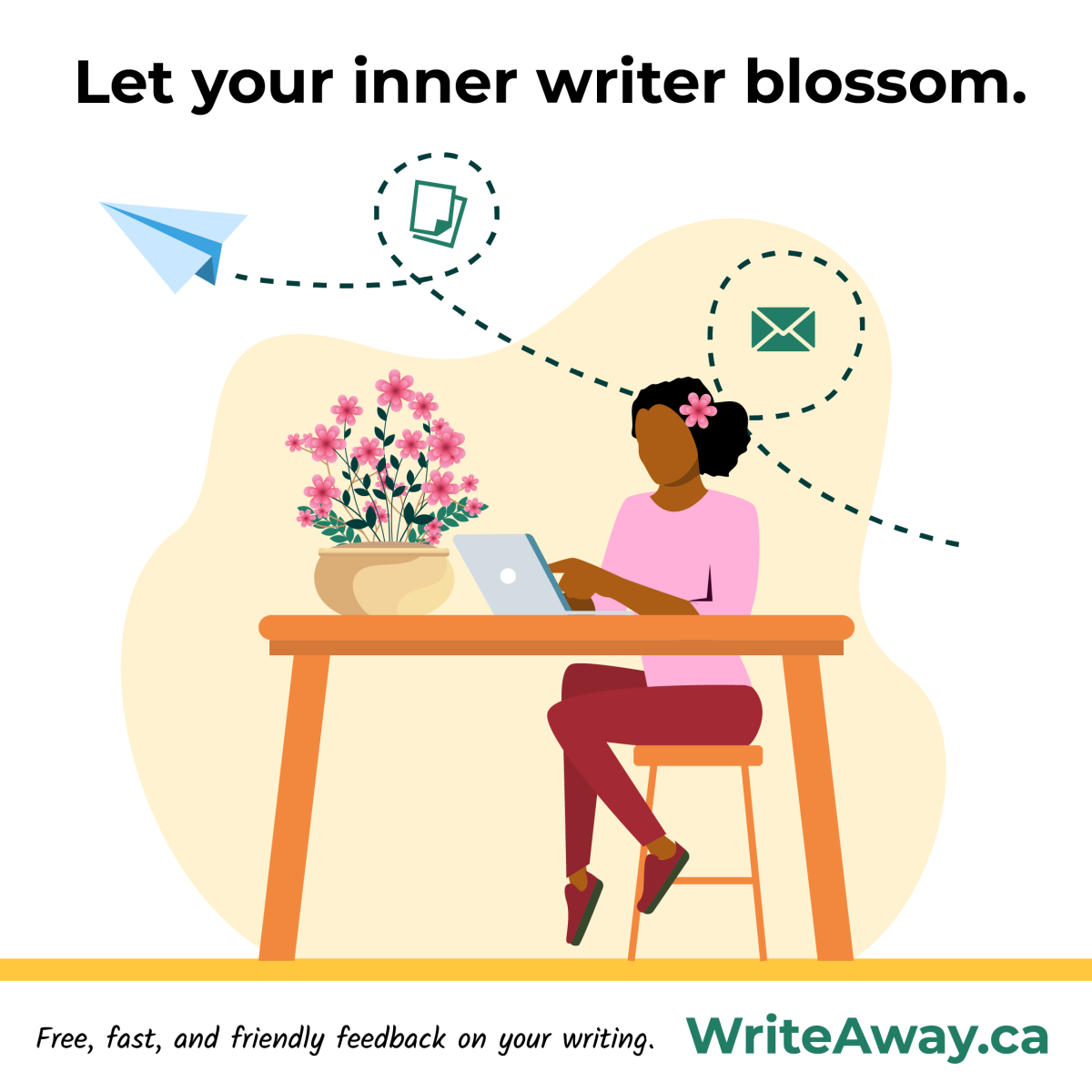 WriteAway can help your inner writer blossom! WriteAway is an online writing support service available to [your institution] undergrad students. Get free, fast, friendly feedback on your draft writing from a qualified tutor. Try it out: writeaway.ca
